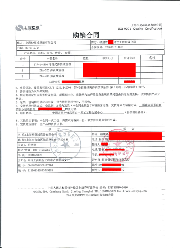 【中國茶旅小鎮(zhèn)(武夷山)會(huì)展中心】配套彈簧減震器合同